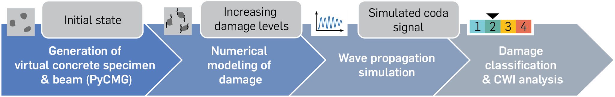 Scale-bridging Modeling of Microstructural Changes in Concrete and Damage Analysis of Concrete Structures for the Identification of Coda Signals (2019 - 2025)